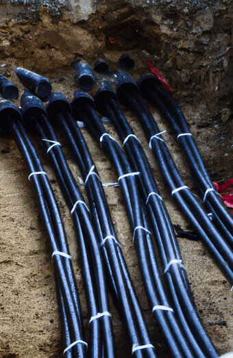 Complete installation of underground service cables from network pillars or pits to new properties, including trenching, conduit installation, and proper terminations.